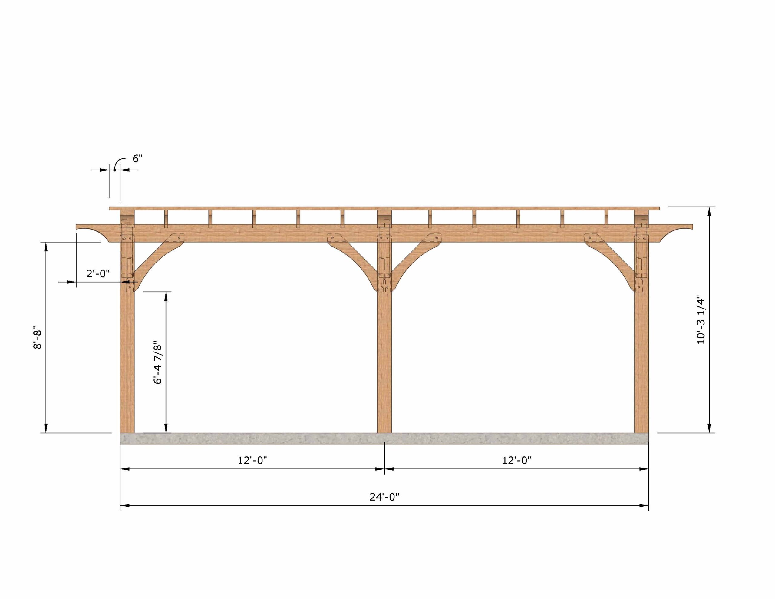 This timber frame pergola offers a perfect balance of strength, simplicity, and elegance. With its 12×24-foot clear-span footprint (no mid-floor posts), it provides an open, inviting space ideal for outdoor dining, relaxation, or garden gatherings.