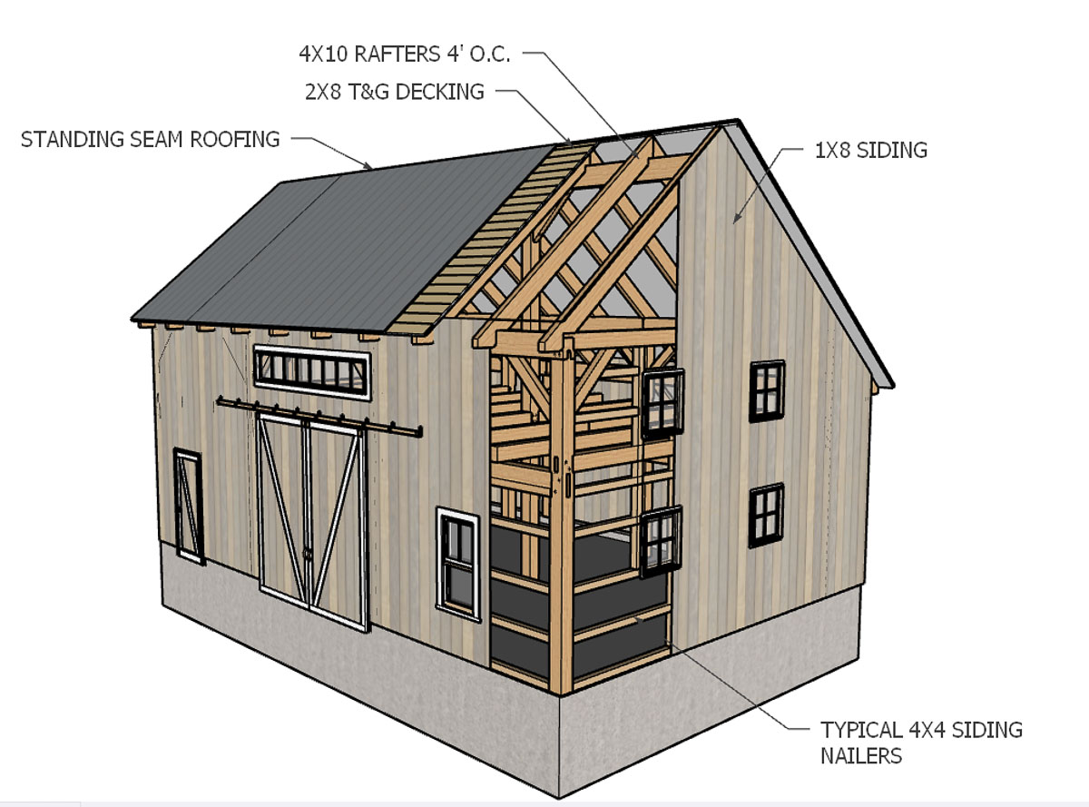 • Bent rafters / typically 8×12’s at each post location with 6×8 or 6×10 cross purlins