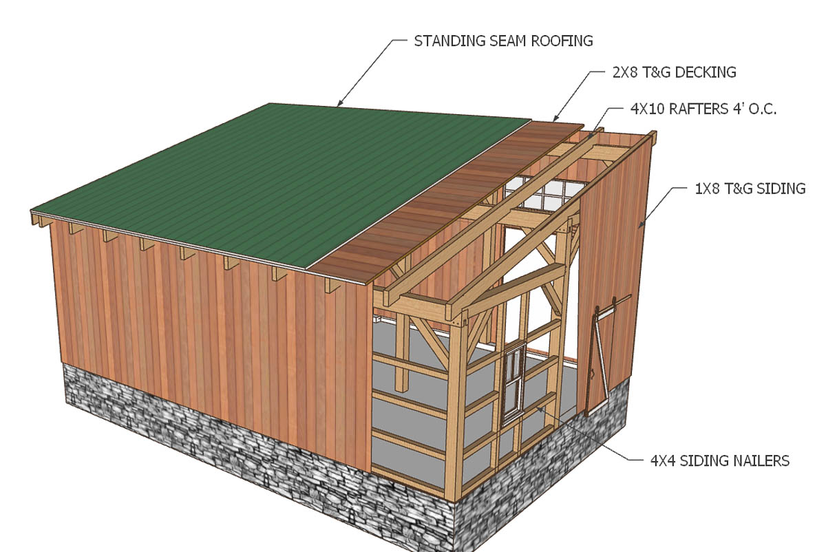 - Bent rafters / typically 8×12’s at each post location with 6×8 or 6×10 cross purlins