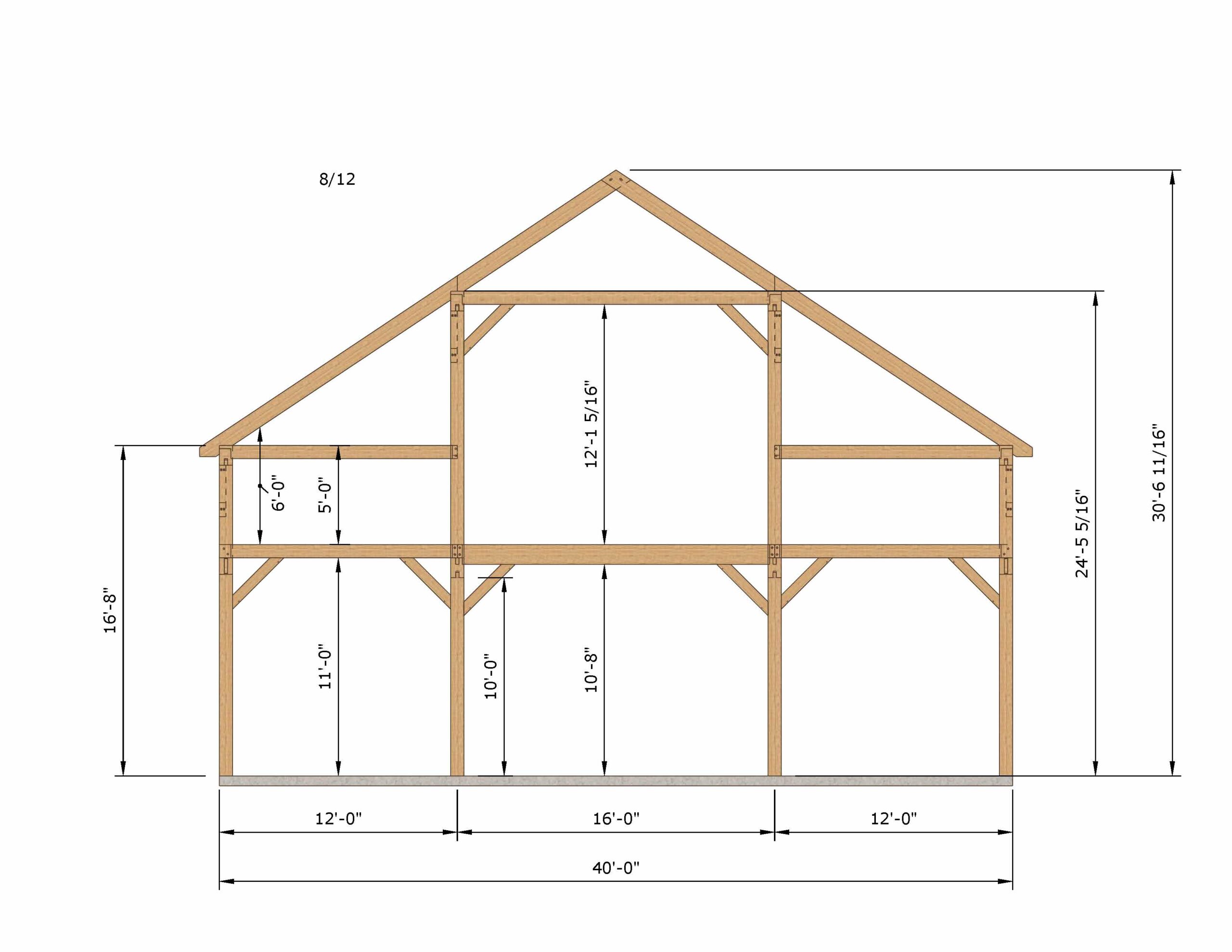 - Tie Beams / typically 6×8, 8×8, 8×10 depending on span