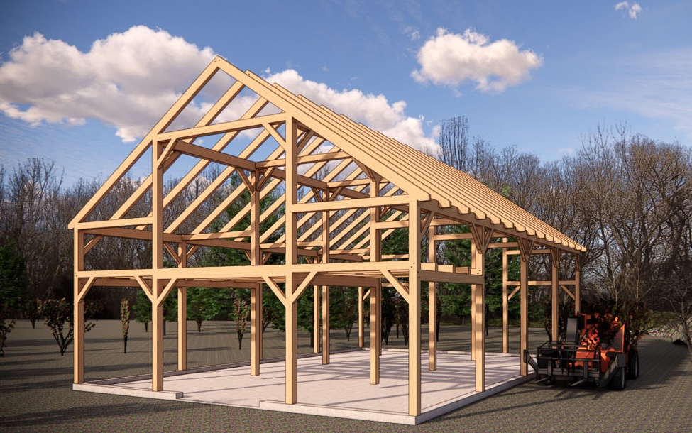 This timber frame barn kit is a stunning example of timeless New England architecture brought to life. With a generous 40×42-foot cathedral area and a 40×14 loft, this design offers remarkable space for a workshop, event barn, or storage building.