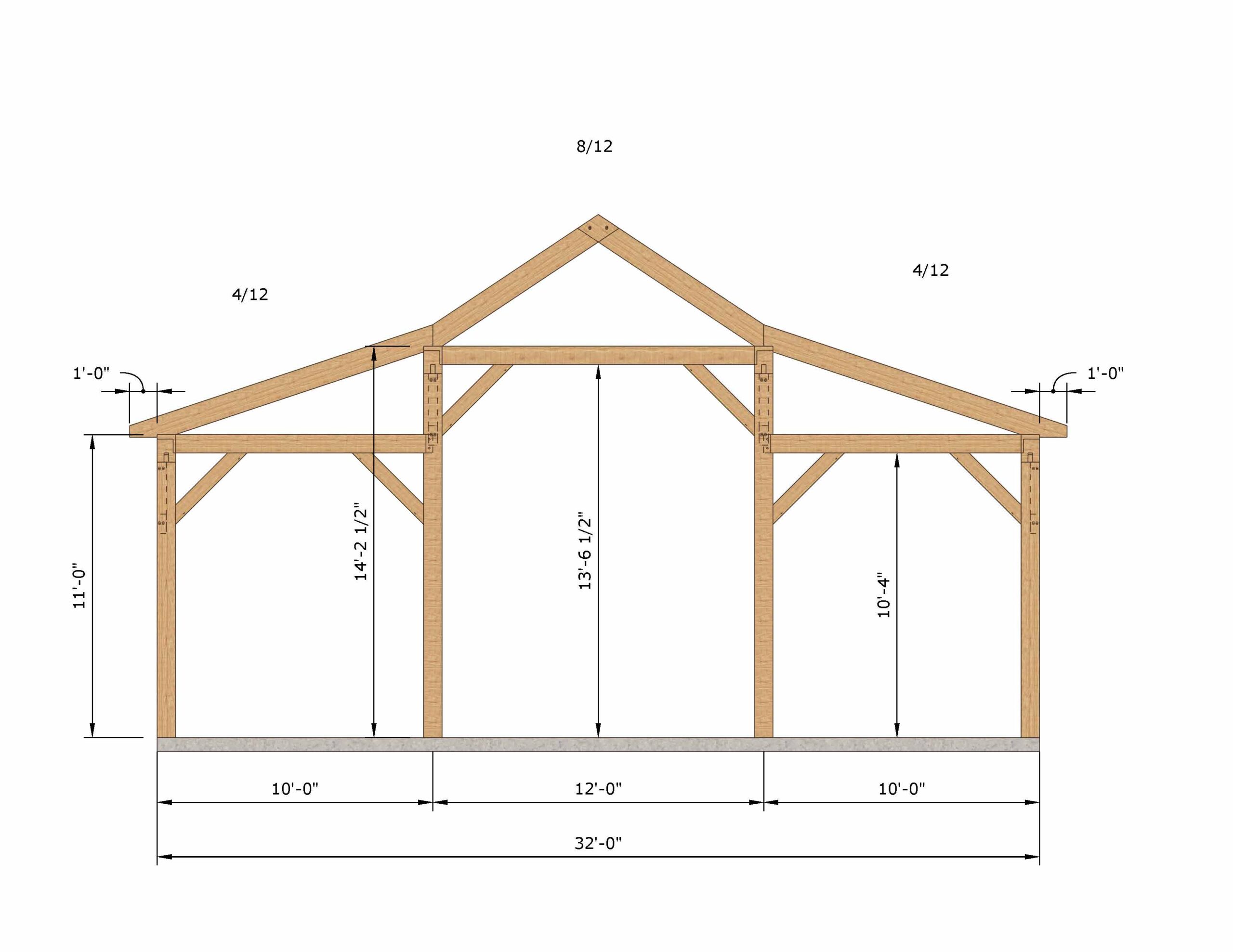 • Bent rafters / typically 8×12’s at each post location with 6×8 or 6×10 cross purlins