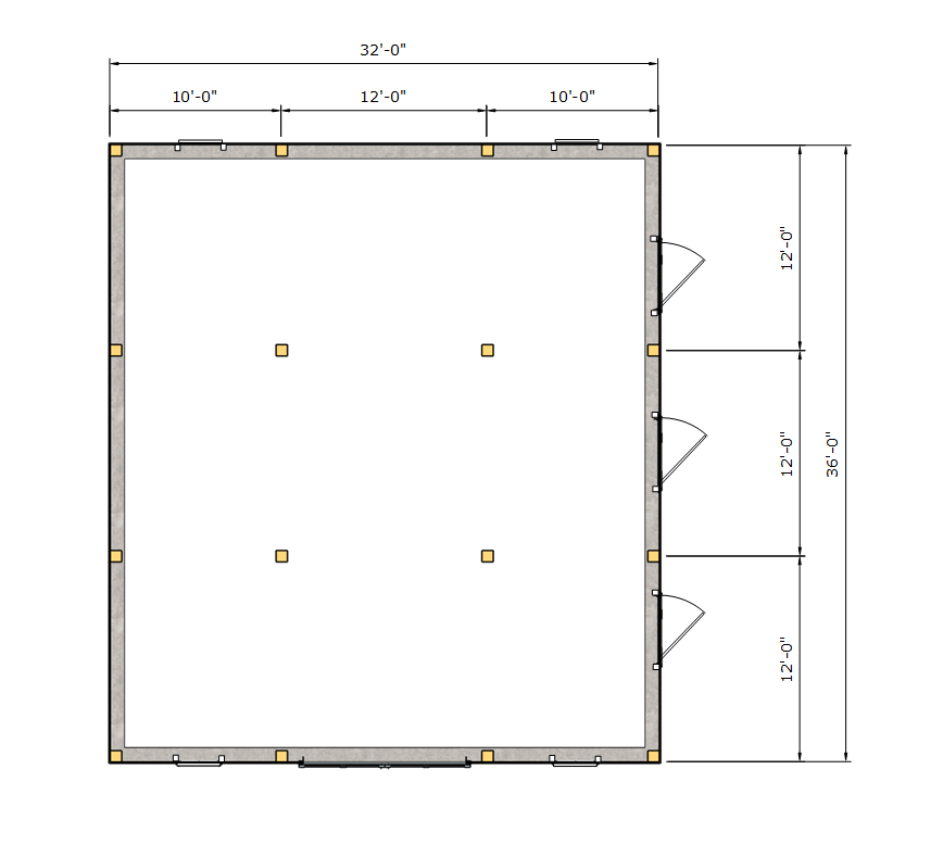 This Monitor timber frame barn kit stands out for its distinctive “gull wing” roofline—where both roof sections connect seamlessly to form a striking, cohesive silhouette. With a 32×36-foot footprint and a 12×36 raised center aisle, this design offers a bright, open main level with no loft above, allowing for exceptional vertical space and natural light.